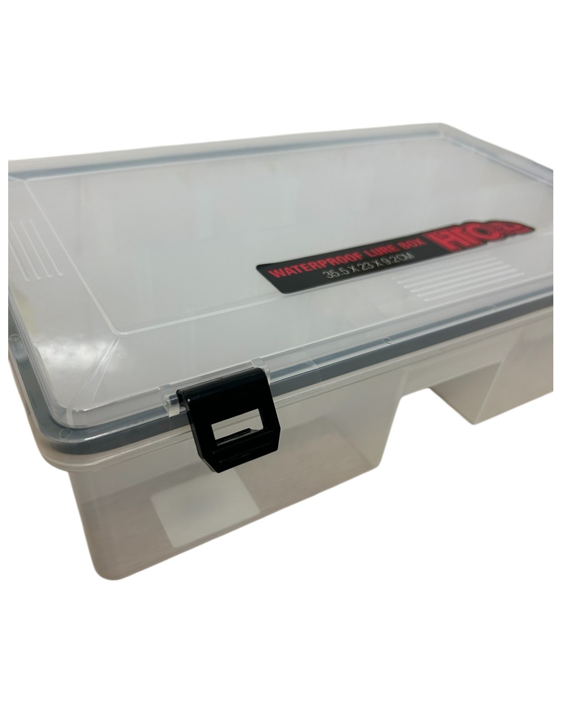 La máxima protección para tu material de pesca. Estas cajas a prueba de agua cuentan con un sello de goma alrededor de los bordes en el que la tapa encaja de forma segura con pestillos resistentes en tres lados de la caja para sujetar la tapa herméticamente y evitar que el agua entre en los compartimentos principales. Estas cajas son ideales si eres un pescador de sargos o pescas en condiciones climáticas extremas. La caja te asegurara que tus artículos y componentes permanezcan secos, sea cual sea el clima. Cada caja está separada en compartimentos y viene con divisores para personalizar cada sección según sus requisitos, dada su profundidad en este modelo entran las bobinas de fluorocarbonos en posición vertical mas utilizadas para la pesca del sargo.