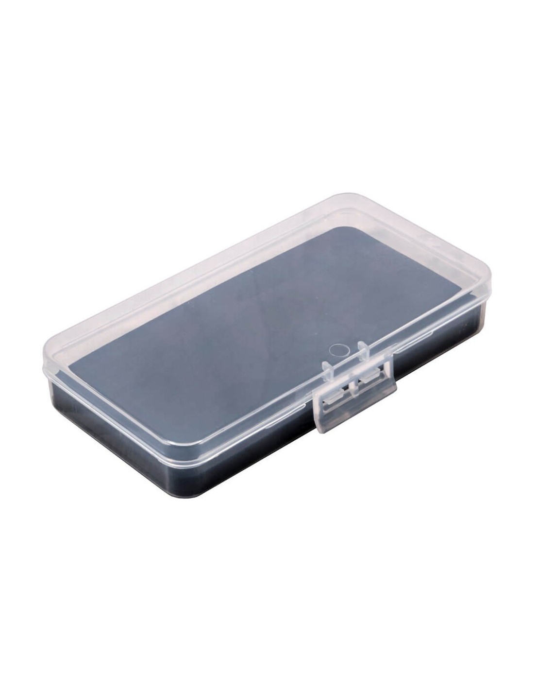Una caja de plástico transparente del tamaño de un bolsillo con un inserto de espuma de color negro que se puede guardar en el bolsillo cuando está en movimiento o en cualquiera de nuestras bolsas de pesca con señuelos. La espuma de hendidura le permite organizar sus cabezas y anzuelos, haciendo que la selección del tamaño sea más rápida en cada momento. El plástico transparente le permite identificar fácilmente lo que hay dentro.